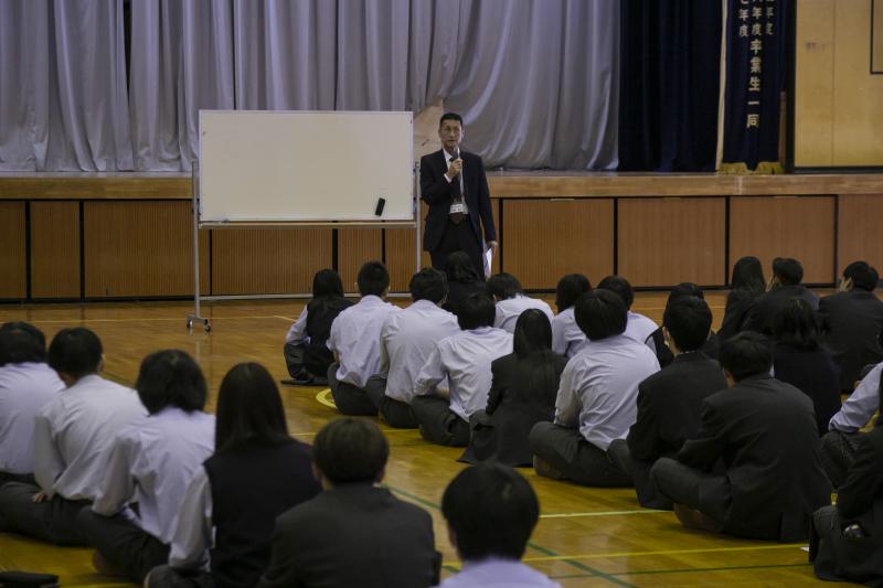 生徒達は将来自分にも起こりうる事だと捉え、講話を真剣に聞いてる姿が見られ